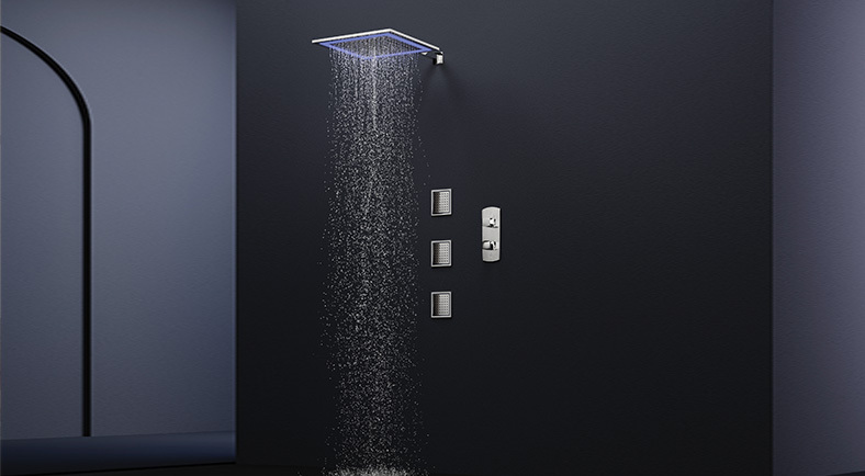 On the cusp of tomorrow lies our HydroLite Shower, the embodiment of modern luxury in the bathroom. A shower design that's a portal to a future where bathing transcends the ordinary. Envision a showerhead that dances with light and water. As the water temperature changes, the LED lighting shifts hues, creating an atmosphere that is both invigorating and soothing. This is where technology and design join hands. These bathroom fittings are about function and an immersive sensory experience. The cutting-edge technology of the HydroLite Shower is a bold testament to the vision of a future where every detail is meticulously choreographed to elevate your bathroom shower experience to an art form.